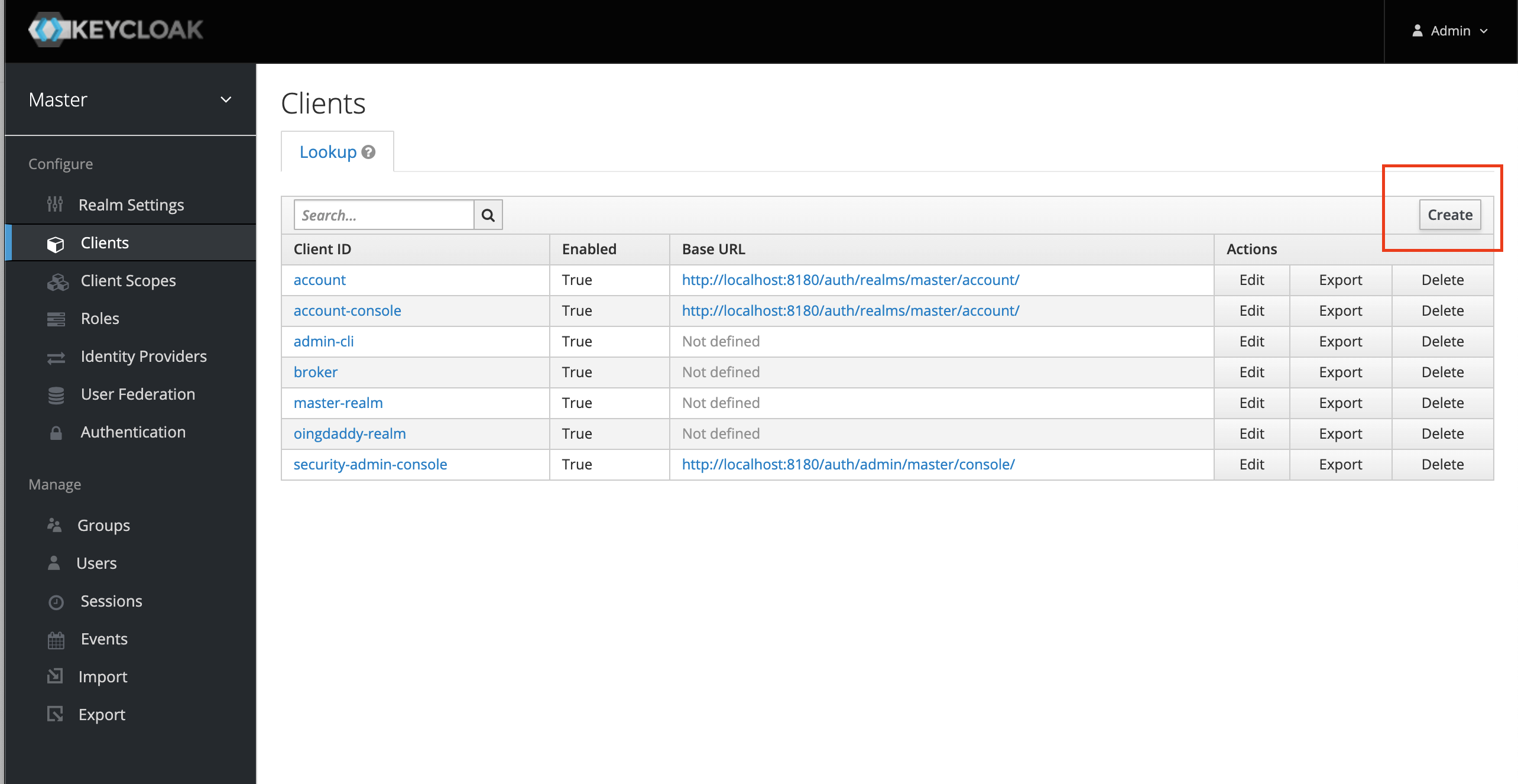 client 탭을 클릭하고 create를 통해 client를 만들어줍니다.